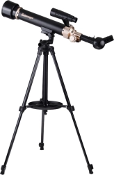 Begin met het verkennen van het heelal met deze veelzijdige astronomische telescoop. Biedt vergroting 30x en 60x, een brandpuntsafstand van 500 mm en een stabiel aluminium statief van 1,3 m. In de verpakking zit een complete set accessoires, waaronder oculairs, een zoeker, een zenitspiegel en een telefoonhouder. Ook inbegrepen is een speciale membraanfilter voor veilig kijken naar de zon.