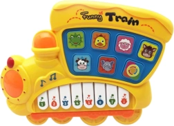 Vrolijke kinderpiano in de vorm van een locomotief brengt spelenderwijs muziek leren voor de allerkleinsten. Biedt 6 dierentoetsen, 8 Do–Re–Mi-toetsen, melodieën en effecten, en ontwikkelt gehoor, geheugen en coördinatie. Licht, veilig en gemakkelijk mee te nemen speelgoed vanaf 18 maanden.