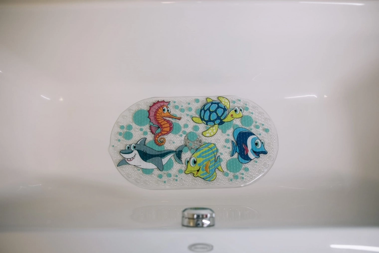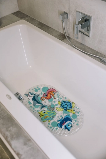 Eenvoudige installatie: voor perfecte hechting vult u het bad met water, plaatst u de mat op de bodem en drukt u gelijkmatig aan. Dankzij de universele afmetingen van 69 × 39 cm past hij in de meeste baden en kinderbadjes.