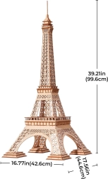 Ontdek de magie van handmatig creëren met het 3D houten model van de Eiffeltoren van ROLIFE. De onderdelen van 2 mm lindehouten multiplex zijn laserprecies uitgesneden, waardoor ze perfect in elkaar passen en de montage soepel en leuk is. De bouwset is een geweldig cadeau voor oudere kinderen en volwassenen en verandert na het bouwen in een stijlvolle designdecoratie.