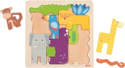 Ontdek de wereld van de safari met deze houten puzzel die kinderen niet alleen vermaakt, maar ook hun vaardigheden ontwikkelt. Dankzij de verschillende vormen van de stukjes en de duidelijke contouren is het leggen intuïtief en motiverend. De dierfiguurtjes kunnen ook los worden gebruikt om mee te spelen en verhalen te vertellen.