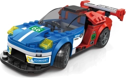 Deze technische bouwset neemt jonge fans mee in de wereld van snelle auto’s en mechanica. Met de onderdelen zet je eenvoudig een elegante racemodel in een aantrekkelijke blauw‑rode kleurencombinatie in elkaar. De stabiele constructie en decoratieve stickers laten kinderen de auto naar eigen fantasie personaliseren.