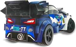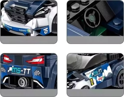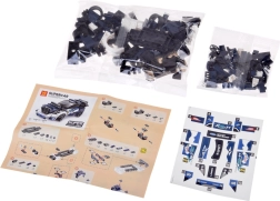 Deze technische bouwset neemt jonge autoliefhebbers mee in de wereld van snelle wagens en slimme mechanismen. Dankzij de elegante blauw-wit-zwarte kleuren en de meegeleverde stickers maakt je kind een eigen sportauto met een originele stijl.