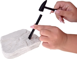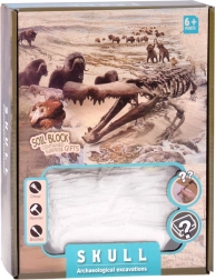 Word een kleine archeoloog en ontdek wat er verborgen zit in het gipsblok! In deze leuke en leerzame set vind je alles wat je nodig hebt voor veilig opgraven – beitels, een hamertje, een kwastje en een veiligheidsbril. Binnenin wacht een willekeurige fossiele schedel van dieren en prehistorische wezens. Realistische tools, een zacht gipsblok en educatief spel ondersteunen geduld, concentratie en fijne motoriek.