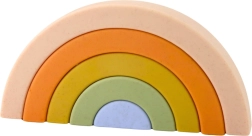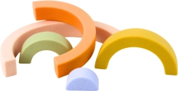 Deze pastel regenboogset van hoogwaardige rubber zal zowel kinderen als ouders enthousiast maken. De afzonderlijke bogen in verschillende groottes kunnen worden gestapeld, gelaagd en verbonden tot fantasierijke vormen. Het zachte materiaal voelt prettig aan en is vriendelijk voor kleine handjes, waardoor het ideaal is voor de eerste bouwervaringen.