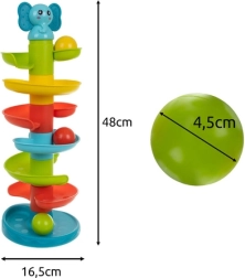 Een leuke en veilige ballentoren voor de allerkleinsten vanaf 18 maanden met een spiraalafdaling, levendige kleuren en een eenvoudig mechanisme dat kinderen keer op keer motiveert. Ondersteunt fijne motoriek, coördinatievaardigheden en logisch denken. Gemakkelijk te monteren en op te bergen en voldoet aan de Europese veiligheidsnormen.