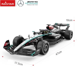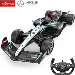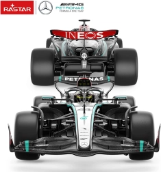Autentiek en snel RC-model van de MERCEDES-AMG F1 W15 E PERFORMANCE op schaal 1:12 van het merk RASTAR, met gedetailleerde afwerking, nauwkeurige besturing en een robuuste constructie van ABS-kunststof. Dankzij de 2,4 GHz technologie biedt het storingsvrije, vloeiende bediening; rubberen wielen en onafhankelijke schokdempers zorgen voor uitstekende grip en stabiliteit.