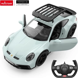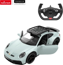 Stijlvolle RC auto PORSCHE 911 Dakar van het merk RASTAR in schaal 1:14 overtuigt met precieze detaillering, soepel rijgedrag en betrouwbare besturing op 2,4 GHz. Voorzien van LED-verlichting, te openen deuren, onafhankelijke vering en rubberen banden voor betere grip.