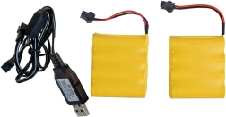 • In de verpakking: trekker, oplegger, wielblokken, afstandsbediening, USB-kabel, 2× accu.