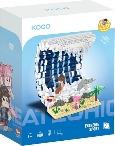 Beleef thuis adrenaline met de bouwset KOCO Surfgolf. Met meer dan 1471 onderdelen bouw je een dynamische scène met een machtige golf, een surfer, een dolfijn en een strand met een palmboom. Inclusief 2 minifiguren voor een authentieke zomerse sfeer. Geschikt voor kinderen vanaf 6 jaar.