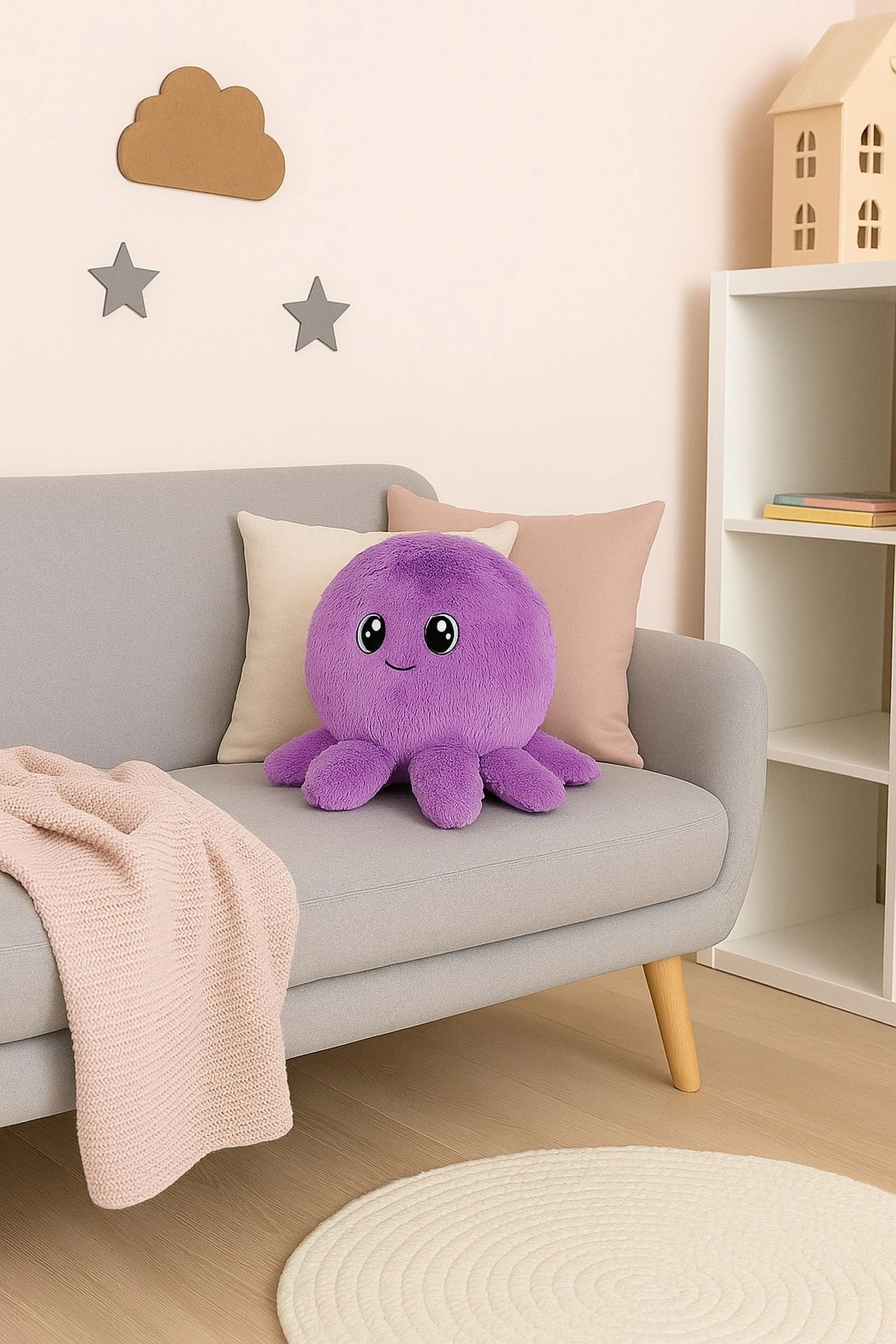 Schattig kussen met octopusmotief dat drie functies in één combineert – zacht kussen, handwarmer-mof en pluche knuffel. Dankzij twee zijopeningen verwarmt het gemakkelijk de handen, is het ideaal voor onderweg en een leuke aanvulling voor de kinderkamer. Gemaakt van zachte, superzachte polyester, geschikt vanaf de geboorte.