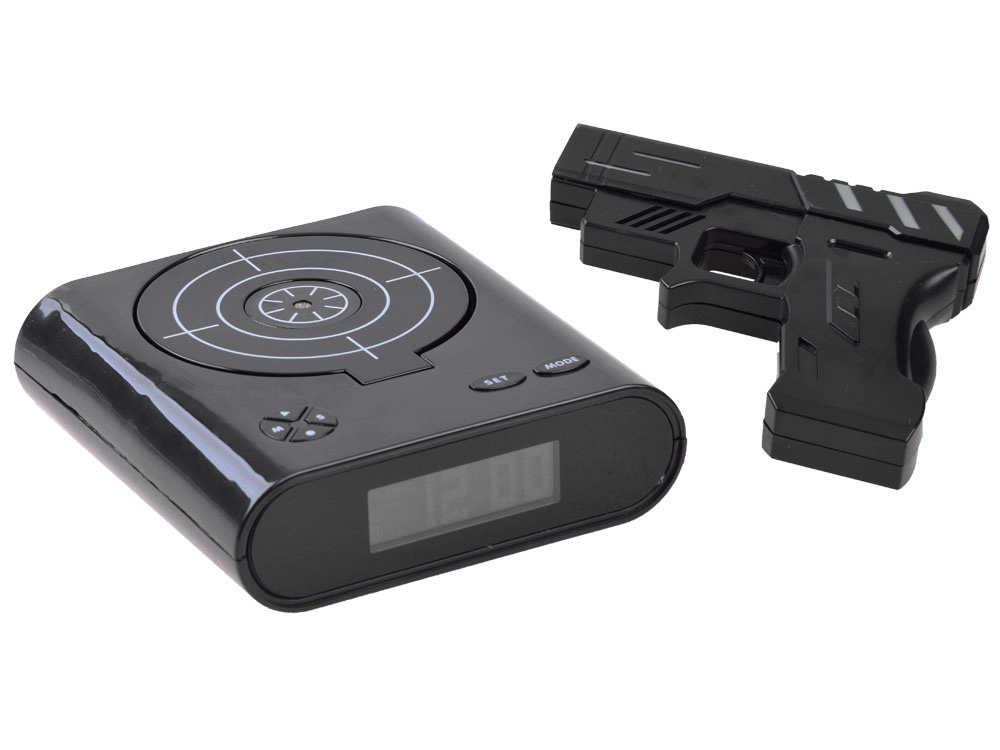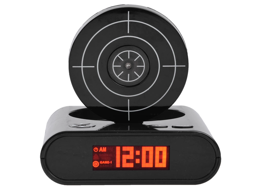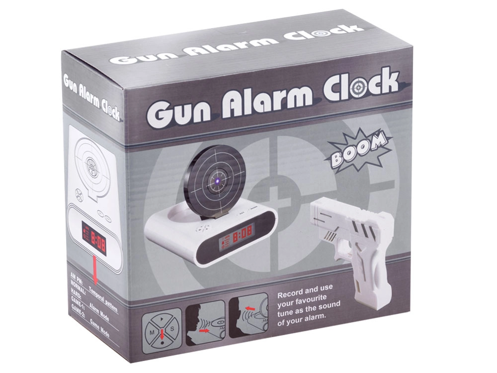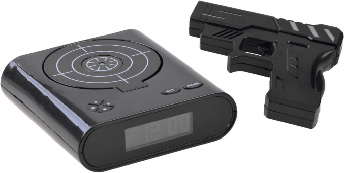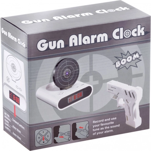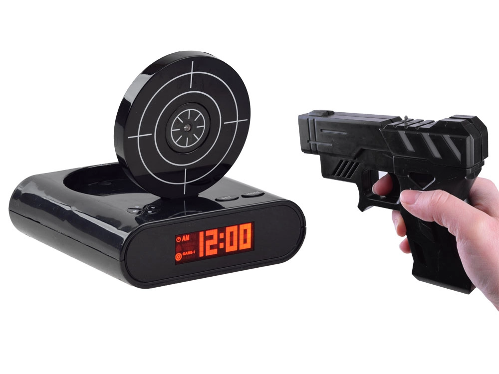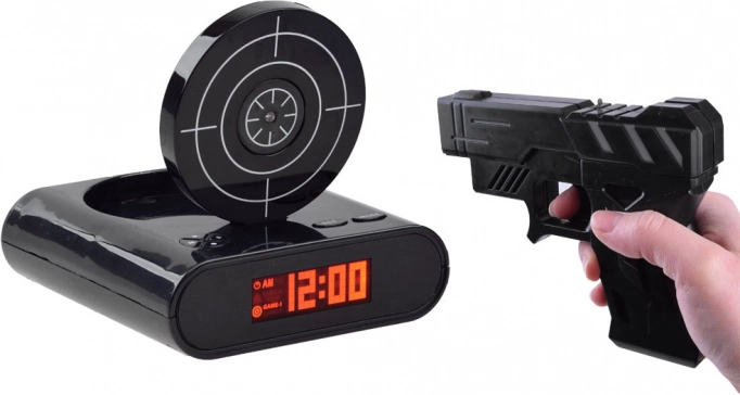 Maak je ochtend opstaan leuker met een originele oplossing: een wekker met pistool en schietschijf. Zodra het alarm afgaat, hoef je alleen te mikken en te “schieten” op de schijf om het alarm uit te zetten. Biedt twee spelmodi, mogelijkheid om je eigen alarm op te nemen en een duidelijk LCD. Werkt op AA-batterijen of via micro-USB (kabel niet inbegrepen). Geweldige fun en functioneel wakker worden in één.