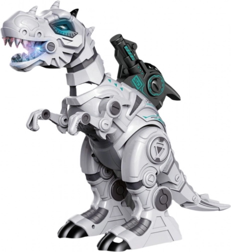 Interactieve robotdinosaurus met afstandsbediening met realistisch gebrul, gekleurde LED-verlichting en een indrukwekkend rookeffect (waterdamp). Met de RC-controller kan een kind eenvoudig beweging en richting sturen. Stevige constructie, futuristisch design en een accu met USB-opladen zorgen voor uren speelplezier en stimuleren de verbeelding.
