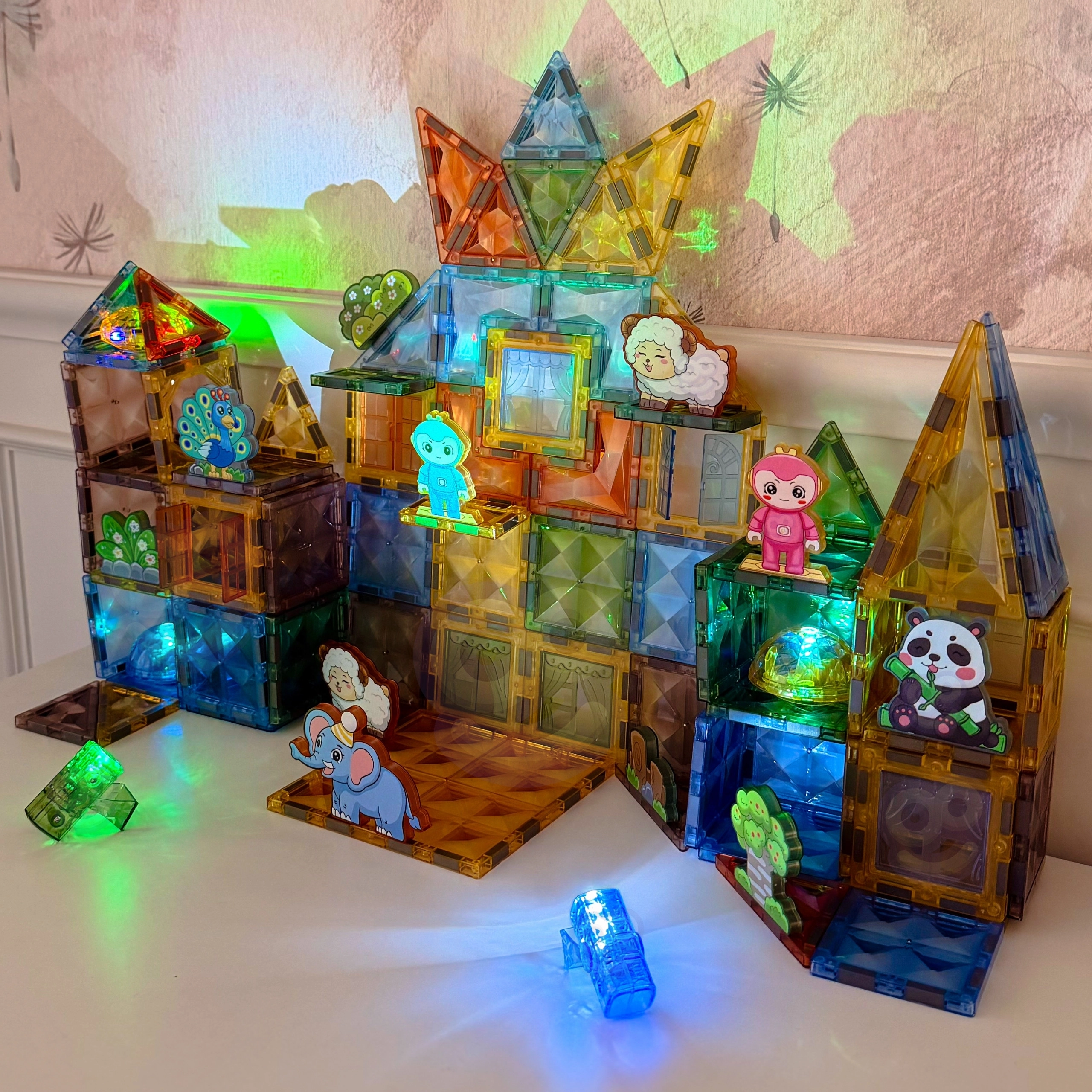 De magnetische set Woopie 3D Dierenwereld biedt 124 onderdelen voor eindeloos bouwen – van hekwerken en verblijven tot een volledig dierenrijk. De lichtgevende componenten geven elk model een indrukwekkend effect en maken van spelen een avondlijk avontuur. Sterke magneten zorgen voor stabiliteit en eenvoudig verbinden, ook voor jongere kinderen.