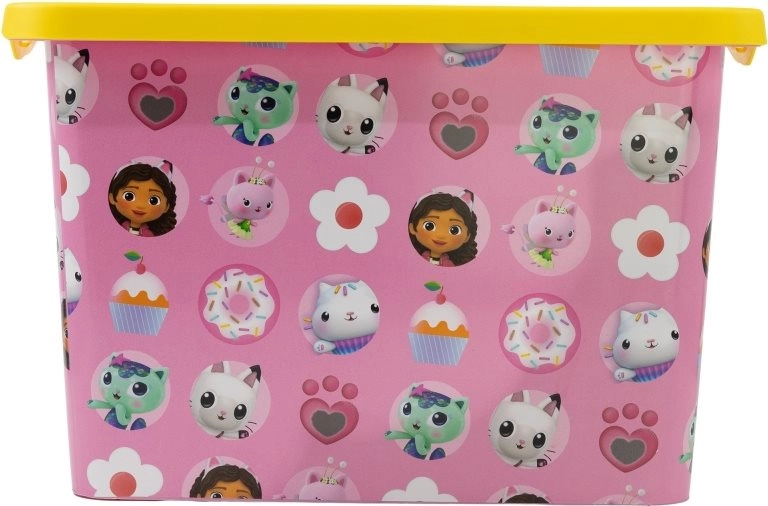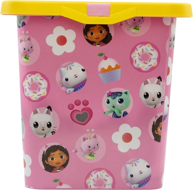 Praktische kunststof opbergbox met een inhoud van 7 l en motief van Gabby’s Magisch Huis, ideaal voor het overzichtelijk opbergen van speelgoed, bouwsets en kleine spulletjes. Heeft een veilige sluiting met afneembaar deksel, compacte afmetingen en een duurzame uitvoering geschikt voor de kinderkamer.