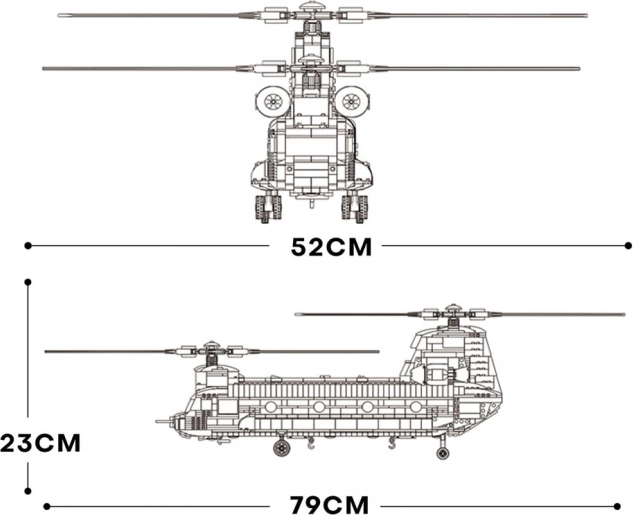 Bouw de legendarische CH-47 CHINOOK van 1451 onderdelen en geniet van realistische details zoals dubbele rotors, een openende laadklep en deuren en een uitgewerkte romp. Het grote model (ca. 79 × 52 × 23 cm) biedt een geweldige bouwervaring, is compatibel met populaire bouwsteentjesmerken en staat prachtig in elke collectie.