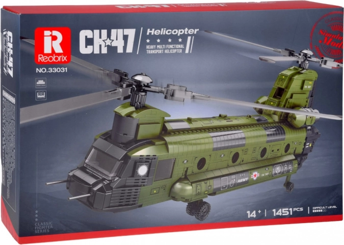 Reobrix bouwset helikopter CH-47 Chinook – militaire tandemrotor-helikopter, 1451 onderdelen