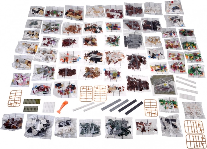 De set bevat 3087 steentjes, inclusief 49 transparante voor de glas-in-loodramen, stickers en een duidelijke geïllustreerde handleiding voor vlot bouwen.
