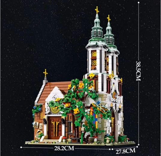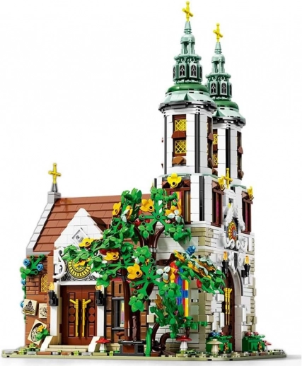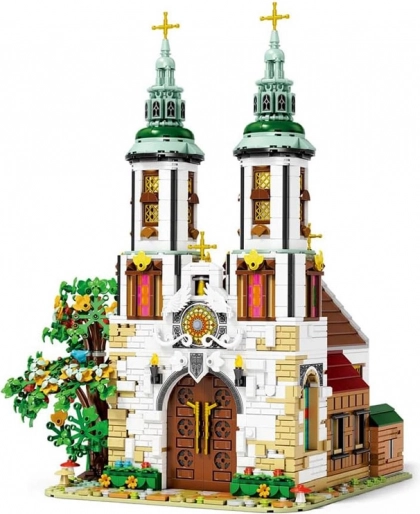 Deze gevorderde bouwset vangt getrouw de silhouet en versiering van een van de oudste kerken van Krakau. Op het model springen de twee hoge torens met gouden kruisen in het oog, een gedetailleerd portaal, glas-in-loodramen van gekleurde transparante steentjes en rijke buitenelementen met groen. Het interieur is versierd met een altaar met gouden details, kandelaars, bloemen en banken.