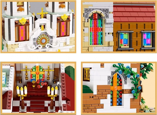 Dankzij de LED-verlichting krijgt het model een uniek karakter – het licht schijnt door de glas-in-loodramen en benadrukt de architectonische lijnen. De bouwset is doordacht opgedeeld in zakjes voor overzichtelijk bouwen en bevat een geïllustreerde handleiding en decoratieve stickers voor een authentieke look.