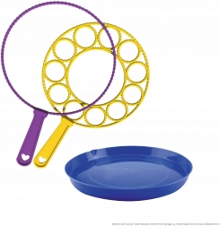 2 ringen (voor grote bellen en voor veel kleine belletjes), schaal voor de vloeistof, bellenblaasvloeistof