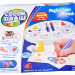 Vul de waterkwast of pen en zie hoe op speciaal papier levendige kleuren verschijnen zonder traditionele verf te gebruiken.