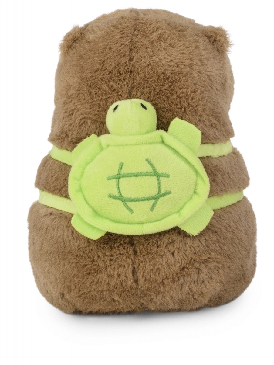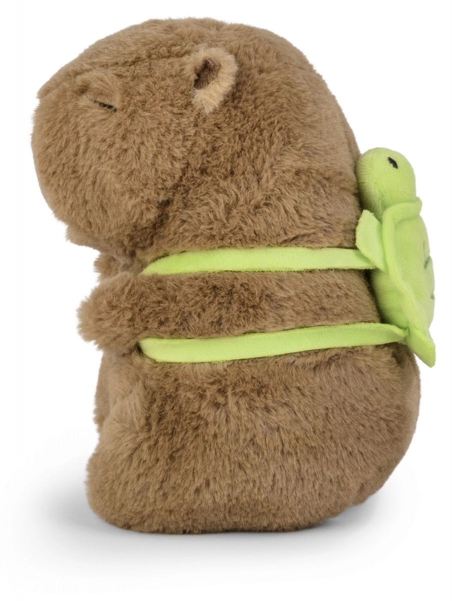Deze pluchen capibara combineert een zachte, donzige afwerking met een speelse rugzak in de vorm van een schildpad, die stevig vastzit en niet stoort tijdens het knuffelen. Dankzij het compacte formaat van 21 cm past hij perfect in kinderhandjes, op bed en in de reistas.