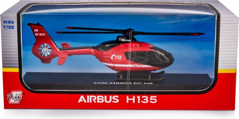 Het gelicentieerde model AIRBUS EC135 biedt een precieze weergave van de populaire reddingshelikopter van de brandweer. De metalen body in combinatie met hoogwaardige kunststof onderdelen zorgt voor stevigheid, detail en een lange levensduur. Dankzij de compacte afmetingen is het model geschikt om tentoon te stellen en voor licht spel.
