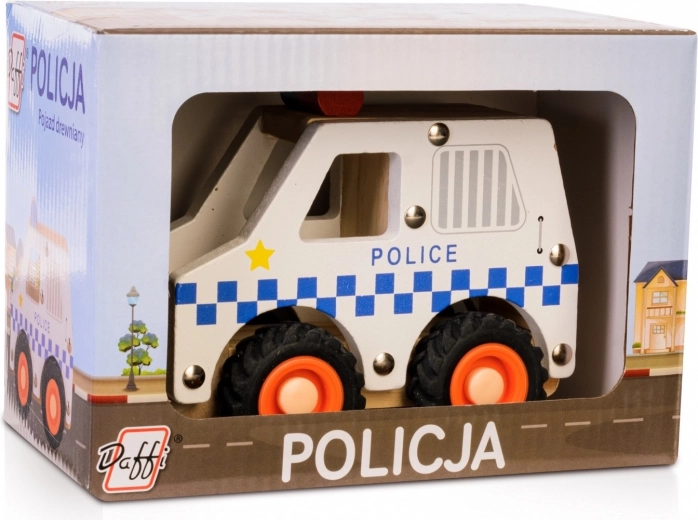 Deze houten politieauto combineert een duurzame houten constructie met zachte, gripvaste wielen voor een soepele rit op diverse ondergronden. Veilige, niet-giftige verven en afgeronde randen zorgen voor zorgeloos speelplezier, ook voor jongere kinderen.