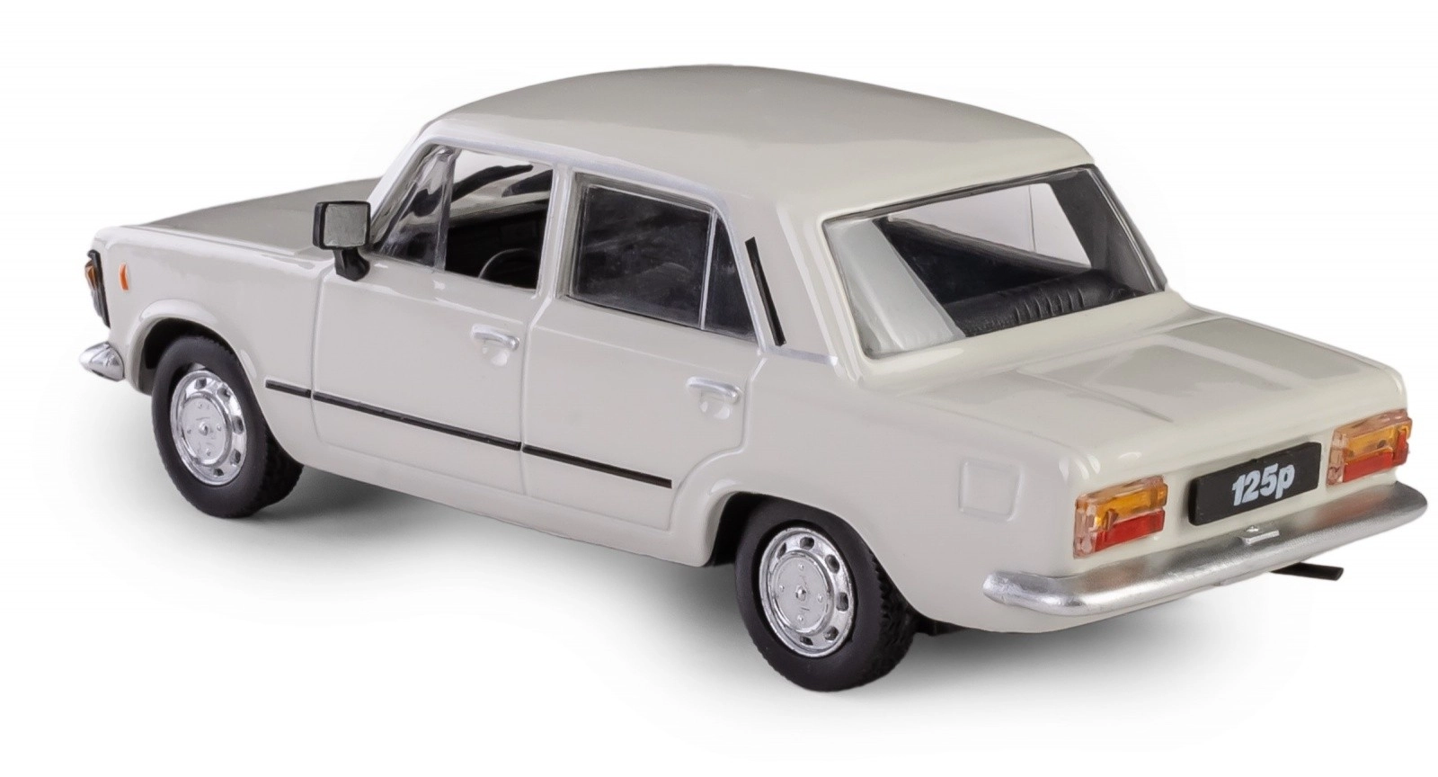 Dit authentieke model is gebaseerd op de gemoderniseerde MR ’75-versie van de beroemde “grote Fiat”, later geproduceerd als FSO 125p. Het valt op door realistische verhoudingen, verchroomde bumpers, nauwkeurig gevormde verlichting en een interieur zichtbaar door de heldere ruiten. De asgrijze lak benadrukt het klassieke karakter van de auto.