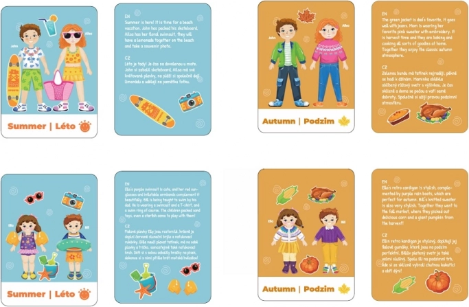 - 8 dubbelzijdige verhaalkaartjes in het Tsjechisch en Engels: zomer, herfst, winterpret, oogst en meer.