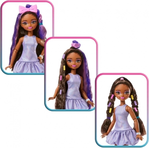 Openklapbare doosjes in de vorm van krulrollen verbergen schattige verrassingen voor haarstyling, waaronder gekleurd krijt en grote strikken. Dankzij het lange, volle haar en de gewrichten om te poseren beleef je eindeloos veel mode- en fotoscènes met de “telefoon”, “ring light”, spiegeltje en andere kleine items.