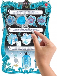 Ga op zoek naar geheimen in de leuke set MONSTER HIGH Straszysekrety – Het Geheim van Hollyduch met de Frankie Stein-pop. Onthul met de sleutel en het vergrootglas symbolen op de kaart, open de garderobe en ontdek de verborgen verrassingen. Nadat je de talisman hebt samengesteld, plaats je hem in de basis van de garderobe en schuif je omhoog om Frankie feestelijk te onthullen in haar elektriserende look.