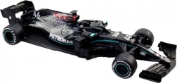 Gedetailleerde aerodynamica, slickbanden en authentieke MERCEDES‑AMG F1 W11 EQ‑kleuren versterken de beleving tijdens het racen en het display op de plank.