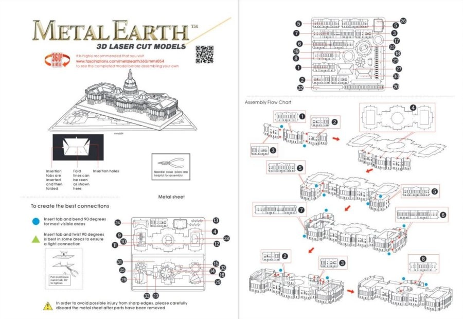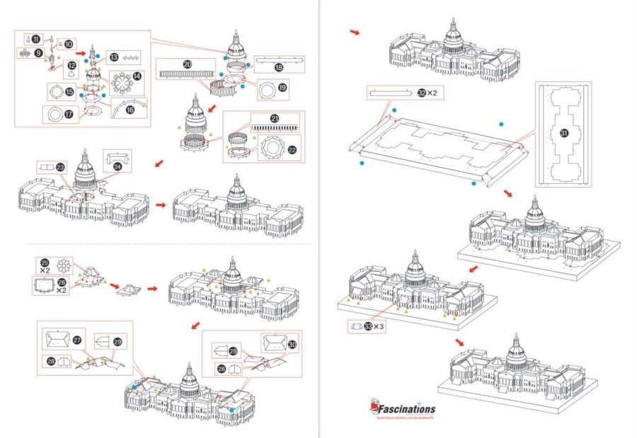 De 3D-puzzel METAL EARTH valt op door de hoogwaardige afwerking en natuurgetrouwe details. Uit twee stalen plaatjes van 11 × 11 cm haal je de onderdelen, die je met behulp van vergrendelingen en buigingen samenvoegt tot een indrukwekkend model van het Capitool. Het resultaat is een elegant, metaalglanzend object dat zowel verzamelaars als liefhebbers van architectuur zal bekoren.