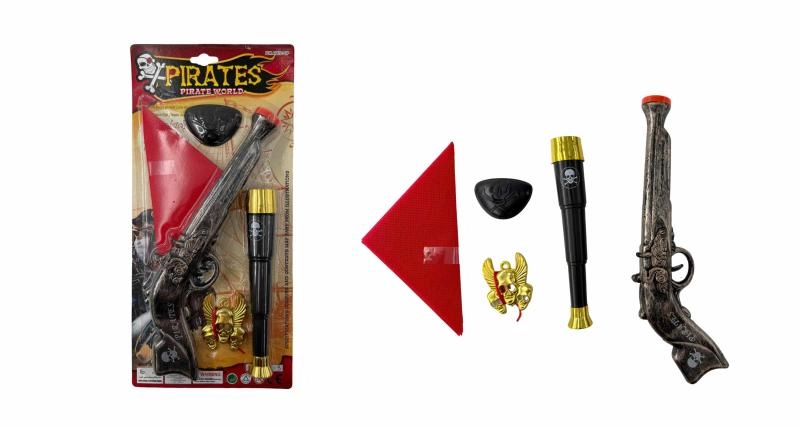 In de verpakking vind je alles wat een echte piraat nodig heeft: van een pistool en verrekijker tot stijlvolle accessoires zoals een sjaal, badge en ooglapje. Ideaal voor themafeestjes, carnaval en thuis spelen.