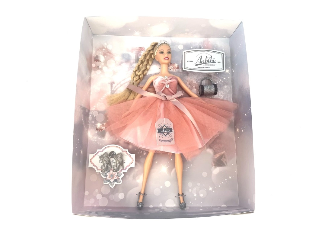 Deze charmante pop in een roze jurk maakt elke kleine prinses blij. Dankzij het fijne formaat van ca. 30 cm ligt ze prettig in de hand, is gemakkelijk mee te nemen en wordt ze een favoriete metgezel thuis en onderweg. De subtiele gelaatsdetails en zorgvuldig afgewerkte jurk geven de pop een realistische en lieve uitstraling.