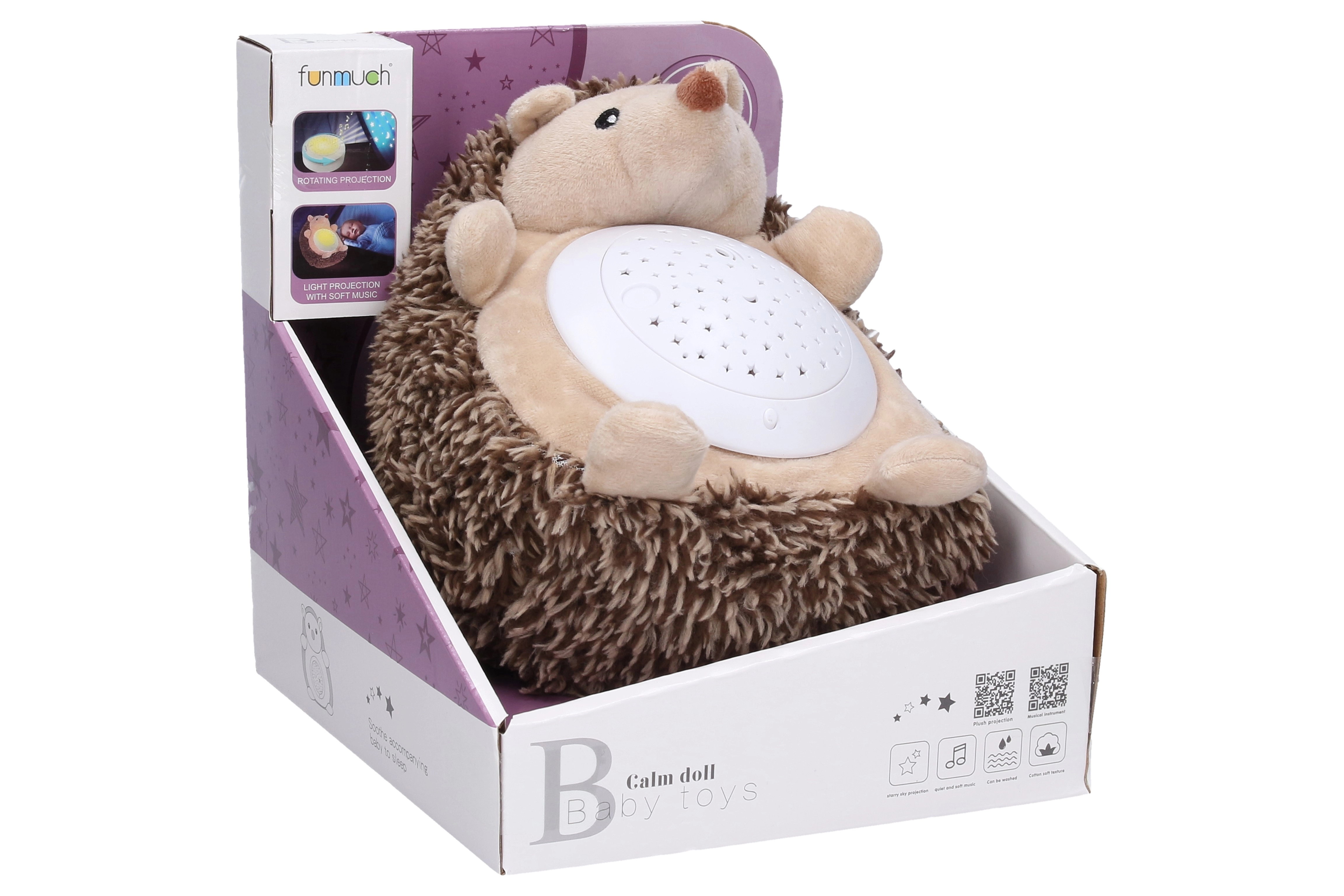 Dit zachte slaap-egeltje is een geweldige metgezel bij het slapengaan. De projector op het buikje tovert sterretjes door de kamer, speelt een wiegeliedje en draait zachtjes om een kalmerende sfeer te creëren voor een ongestoorde slaap.