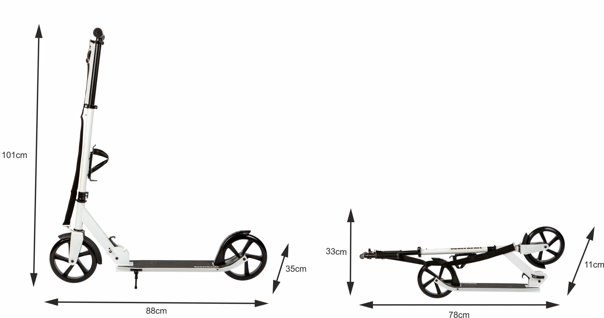 Deze stadsstep combineert comfort, veiligheid en stijl voor dagelijks woon-werk/schoolverkeer en leuke ritten. Dankzij de grote 200 mm wielen met ABEC-7 lagers rijdt hij soepel over asfalt, trottoirs en fietspaden, terwijl het aluminium frame zorgt voor laag gewicht en hoge duurzaamheid. Het opvouwmechanisme maakt eenvoudig dragen en opbergen mogelijk thuis, op school of in de kofferbak van de auto.