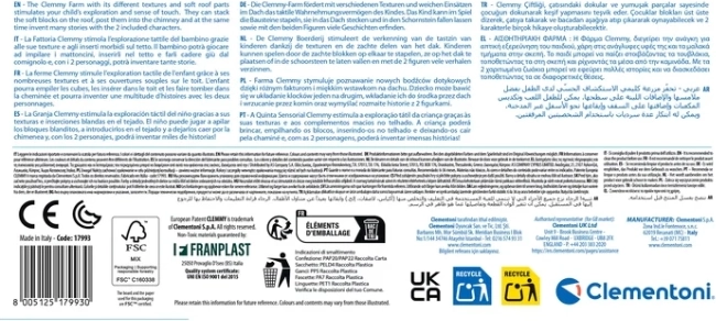 Ontdek de speelse set voor de allerkleinsten: de CLEMENTONI Clemmy zintuigenboerderij met zachte blokken, mechanische functies en twee schattige figuurtjes. Kinderen kunnen de blokken via de ramen en het dak insteken, verschillende texturen verkennen, aan de windmolen draaien en zo fijne motoriek en logisch denken oefenen. Ideaal voor de leeftijd 6–36 maanden, zonder batterijen.