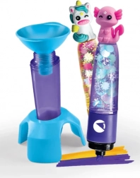 De set bevat meerdere gekleurde inkten, lege stifthulzen, kleine versieringen en hulpmiddelen voor de montage. Kinderen kiezen een kleur, vullen de stift, versieren hem met figuurtjes van magische dieren en hebben zo een origineel schoolaccessoire klaar.