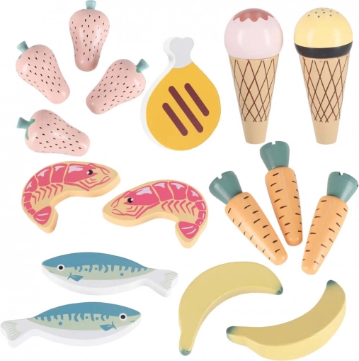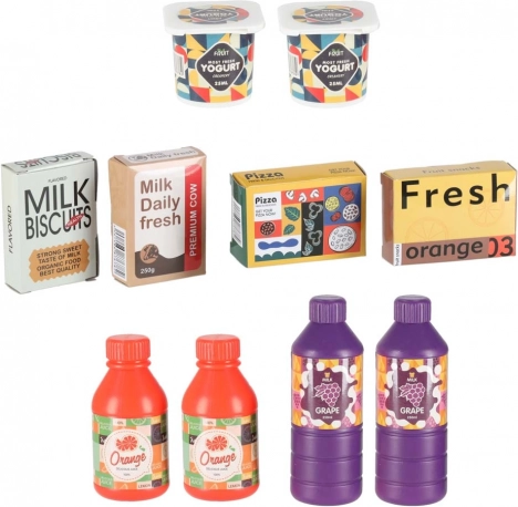 Mandje, fruit en groenten, vis, vlees, yoghurt, koekjes, pizza en ijs – kinderen kunnen de schappen aanvullen en hun eigen assortiment samenstellen.