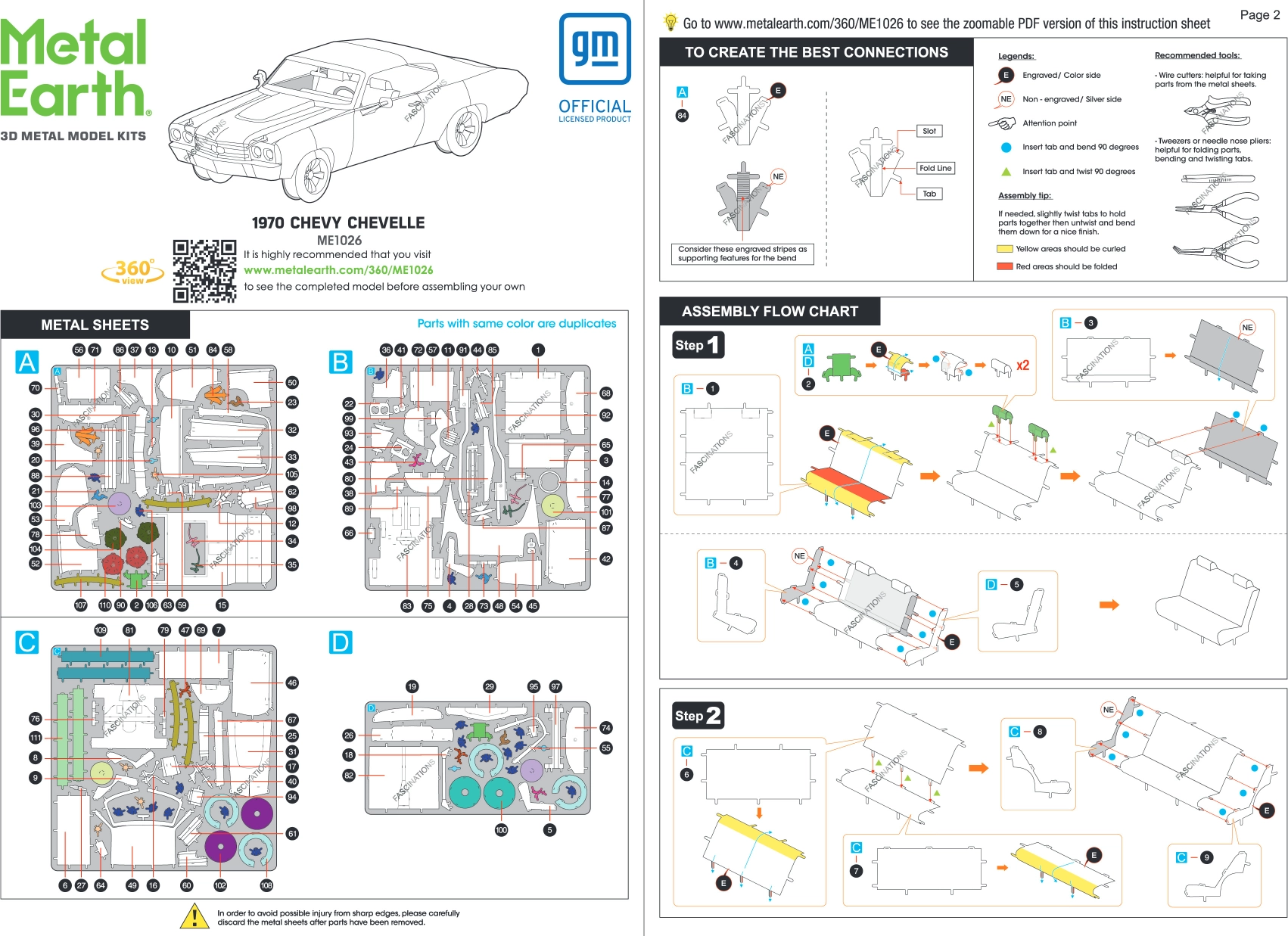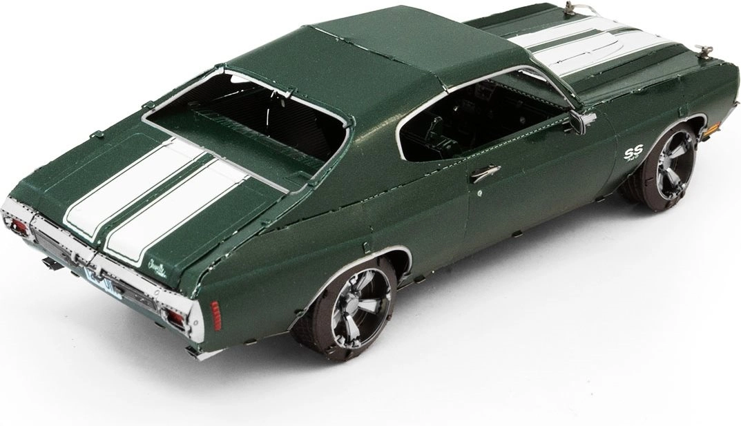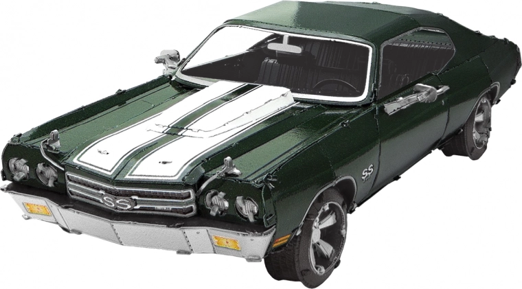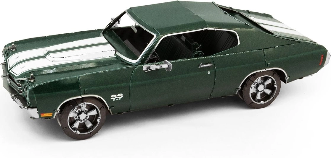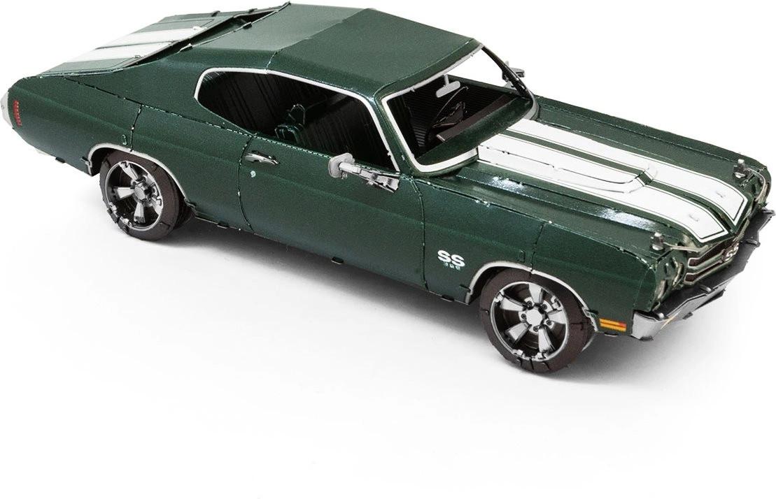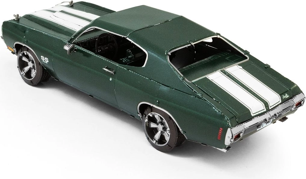 Ontdek de charme van de metalen bouwsets van METAL EARTH en maak een natuurgetrouwe miniatuur van de legendarische muscle car 1970 Chevrolet Chevelle. Onderdelen worden uit roestvrijstalen plaatjes gehaald en met vergrendelingen verbonden – zonder een druppel lijm. De precieze lasergravure geeft het model een authentieke look.