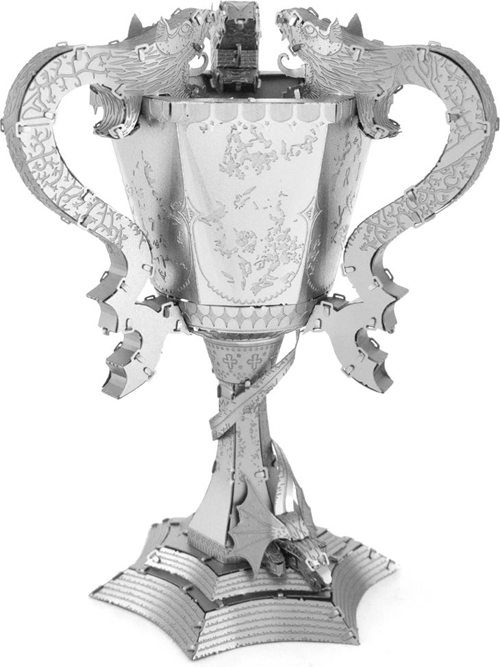 Dit metalen 3D-model vangt de Beker van het Toverschooltoernooi natuurgetrouw, met rijk versierde handvatten in de vorm van draken en een opvallend geëtst patroon. Van dunne stalen plaatjes bouw je een elegante trofee met glanzend oppervlak die een in het oog springende decoratie en een verzamelobject is voor Harry Potter-fans.