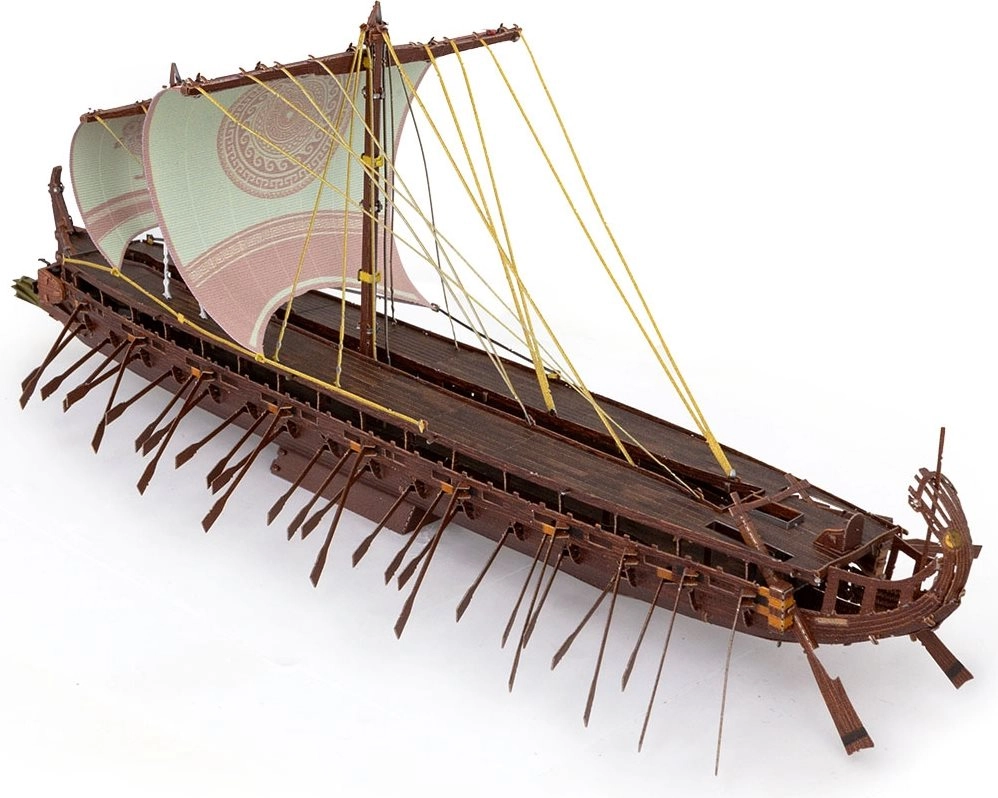 Ontdek de charme van de antieke marine met het metalen 3D-model van een Griekse trireme. De METAL EARTH Premium-serie biedt extra fijne details dankzij lasergravure, die de zeilen, riemen en dekuitrusting benadrukt. Het model is bedoeld voor iedereen die van precisiewerk, geschiedenis en designobjecten houdt.