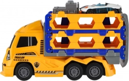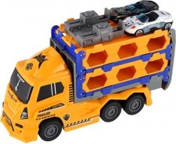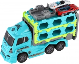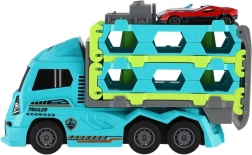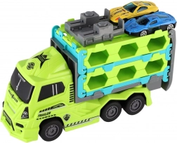 De vrachtwagen is verkrijgbaar in meerdere frisse kleuren en valt op door opvallende details en opbergslots voor de autootjes.