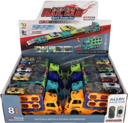 In de verpakking zitten 2 sportautootjes die je op het bovendek kunt laden en eenvoudig kunt vervoeren.