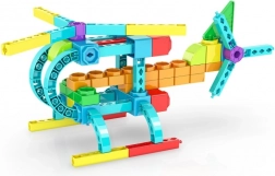 Bouw raceauto’s, een helikopter en andere voertuigen met bewegende onderdelen en wieltjes – voor nog meer speelplezier.