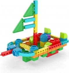 Een grote set kleurrijke blokken en connectoren prikkelt de fantasie en fijne motoriek. Kinderen bouwen eenvoudig diertjes, figuurtjes en machines.