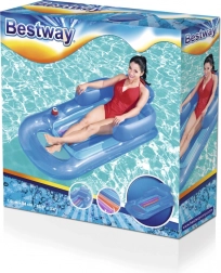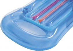 Dit stijlvolle blauwe ligbed combineert comfort en stabiliteit. Verhoogde armsteunen en een ergonomische rug- en hoofdsteun houden je lichaam in een comfortabele positie, terwijl meerdere luchtkamers zorgen voor goede drijfstabiliteit. De geïntegreerde bekerhouder laat je van je favoriete drankje genieten zonder het water uit te hoeven.